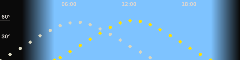 | Höchster Sonnenstand (Kulmination) | 13:16 Uhr (h = 59.3°) |