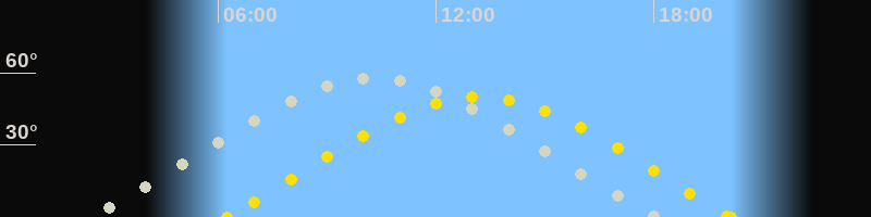 | Sonnenaufgang | 06:14 Uhr im Osten (αAz = 72.1°) |