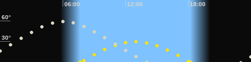| Höchster Stand (Kulmination) | 06:01 Uhr (h=59.3°) |