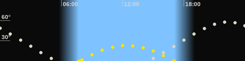Höchster Sonnenstand (Kulmination)12:24 Uhr (h = 23.1°)