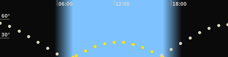| Höchster Sonnenstand (Kulmination) | 12:24 Uhr (h = 23.7°) |
