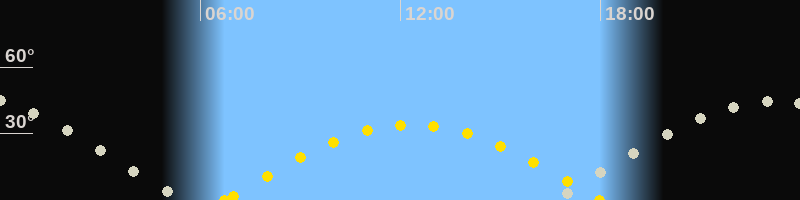Höchster Sonnenstand (Kulmination)12:21 Uhr (h = 34°)