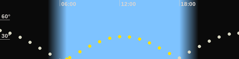 Höchster Sonnenstand (Kulmination)12:21 Uhr (h = 34.4°)