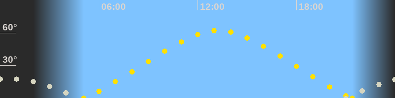 | Höchster Sonnenstand (Kulmination) | 13:14 Uhr (h = 62.1°) |