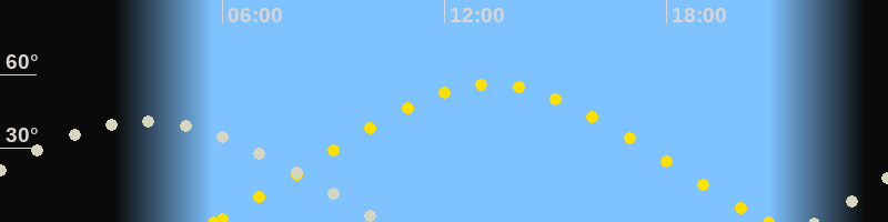| Höchster Sonnenstand (Kulmination) | 13:16 Uhr (h = 55.9°) |