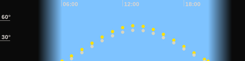 | Sonnenaufgang | 06:03 Uhr im Osten (αAz = 68.2°) |