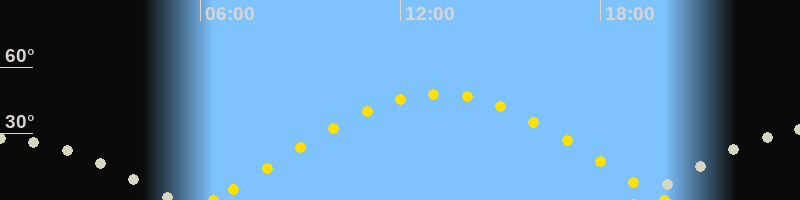 | Höchster Sonnenstand (Kulmination) | 13:10 Uhr (h = 47.9°) |