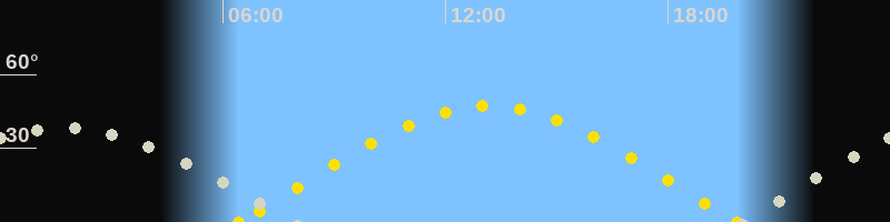 | Höchster Sonnenstand (Kulmination) | 13:10 Uhr (h = 47.1°) |