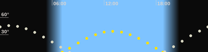 | Höchster Sonnenstand (Kulmination) | 13:00 Uhr (h = 36°) |