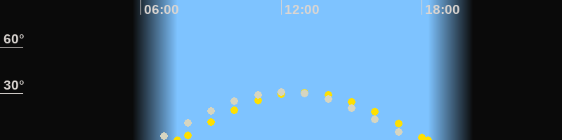 | Höchster Sonnenstand (Kulmination) | 12:56 Uhr (h = 30.7°) |
