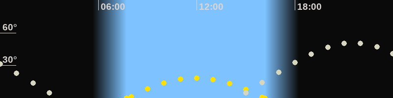 | Höchster Sonnenstand (Kulmination) | 11:57 Uhr (h = 18.5°) |
