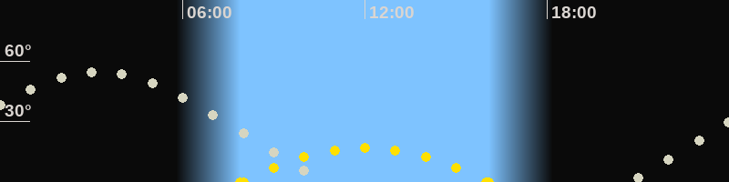 | Höchster Sonnenstand (Kulmination) | 11:59 Uhr (h = 17.2°) |