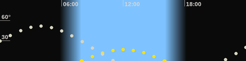 | Höchster Sonnenstand (Kulmination) | 12:00 Uhr (h = 17°) |