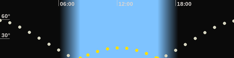 | Höchster Sonnenstand (Kulmination) | 12:11 Uhr (h = 16°) |
