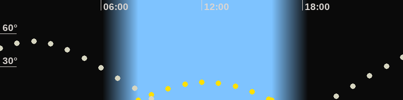 | Höchster Sonnenstand (Kulmination) | 12:13 Uhr (h = 16.2°) |