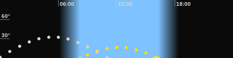 | Höchster Sonnenstand (Kulmination) | 12:15 Uhr (h = 16.7°) |
