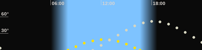 | Höchster Sonnenstand (Kulmination) | 12:20 Uhr (h = 18.9°) |