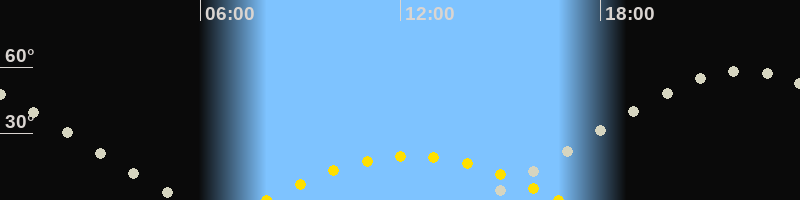 | Höchster Sonnenstand (Kulmination) | 12:22 Uhr (h = 20°) |