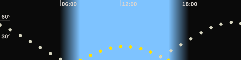 | Höchster Sonnenstand (Kulmination) | 12:22 Uhr (h = 20.3°) |