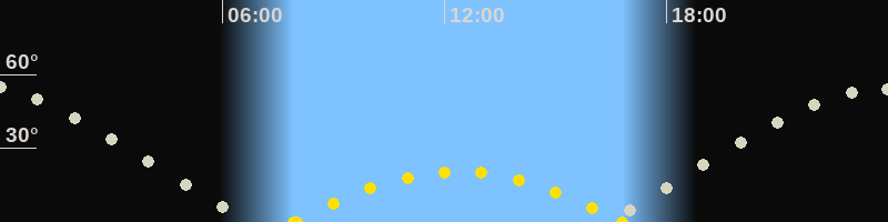 | Höchster Sonnenstand (Kulmination) | 12:22 Uhr (h = 20.5°) |