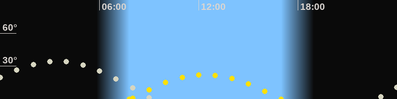 | Höchster Sonnenstand (Kulmination) | 12:23 Uhr (h = 22.1°) |