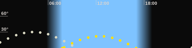 | Höchster Sonnenstand (Kulmination) | 12:23 Uhr (h = 22.4°) |
