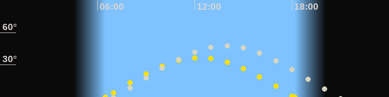 Höchster Sonnenstand (Kulmination)12:19 Uhr (h = 36.7°)