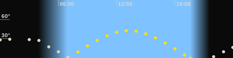 Höchster Sonnenstand (Kulmination)13:15 Uhr (h = 42.6°)