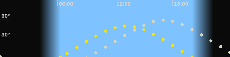 | Sonnenaufgang | 06:18 Uhr im Osten (αAz = 74°) |