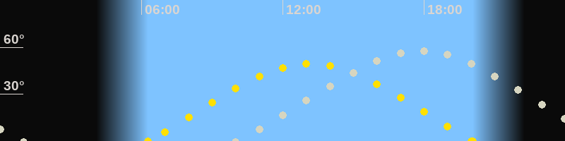 | Sonnenaufgang | 06:16 Uhr im Osten (αAz = 73.4°) |