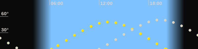 | Sonnenaufgang | 06:12 Uhr im Osten (αAz = 72.3°) |