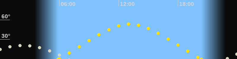 | Sonnenuntergang | 20:23 Uhr im Nordwesten (αAz = 293.5°) |