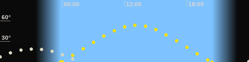 | Sonnenaufgang | 05:50 Uhr im Nordosten (αAz = 66.3°) |