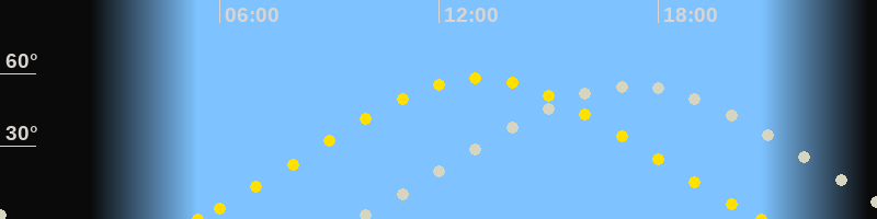 | Höchster Sonnenstand (Kulmination) | 13:06 Uhr (h = 58.1°) |