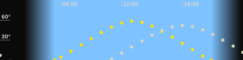 | Höchster Sonnenstand (Kulmination) | 13:06 Uhr (h = 58.3°) |