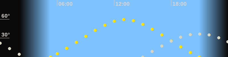 | Höchster Sonnenstand (Kulmination) | 13:06 Uhr (h = 59.2°) |