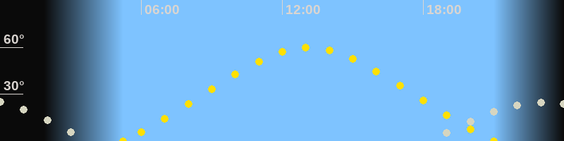 | Höchster Sonnenstand (Kulmination) | 13:07 Uhr (h = 59.8°) |