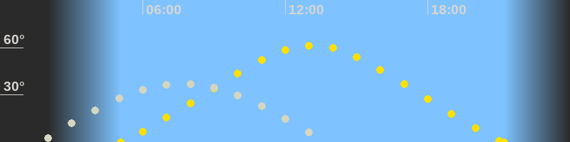 | Höchster Sonnenstand (Kulmination) | 13:08 Uhr (h = 61.4°) |