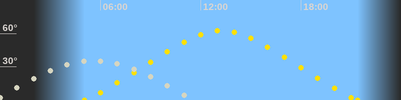 | Höchster Sonnenstand (Kulmination) | 13:13 Uhr (h = 62.5°) |