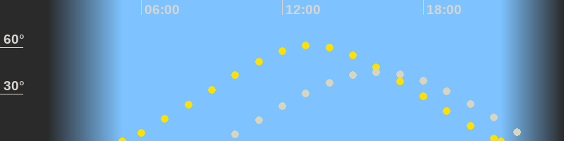 | Höchster Sonnenstand (Kulmination) | 13:15 Uhr (h = 61.3°) |