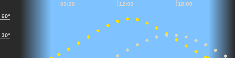 | Höchster Sonnenstand (Kulmination) | 13:16 Uhr (h = 61°) |