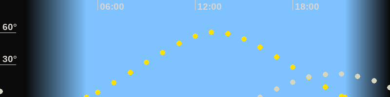 | Höchster Sonnenstand (Kulmination) | 13:16 Uhr (h = 60.3°) |