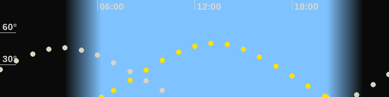 | Sonnenaufgang | 06:14 Uhr im Osten (αAz = 71.9°) |