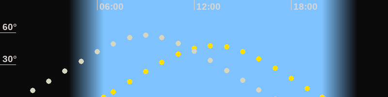 | Höchster Sonnenstand (Kulmination) | 13:10 Uhr (h = 48°) |