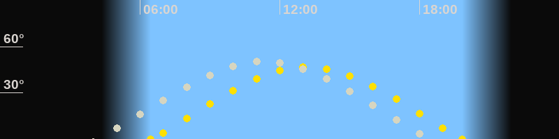 | Sonnenaufgang | 06:27 Uhr im Osten (αAz = 77°) |
