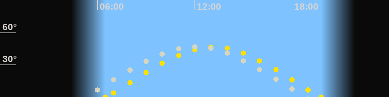 | Sonnenaufgang | 06:29 Uhr im Osten (αAz = 77.6°) |