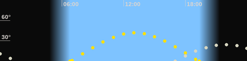 | Sonnenaufgang | 06:47 Uhr im Osten (αAz = 84.9°) |