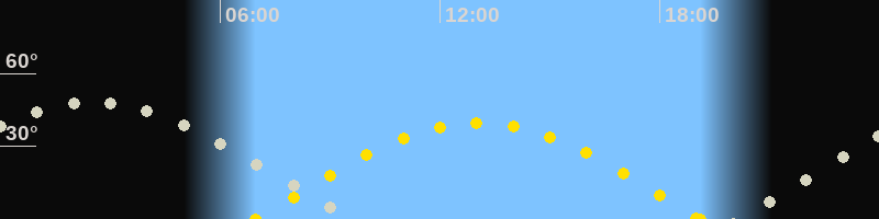 | Sonnenaufgang | 06:57 Uhr im Osten (αAz = 88.5°) |