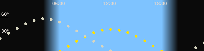 | Sonnenaufgang | 07:01 Uhr im Osten (αAz = 90.4°) |