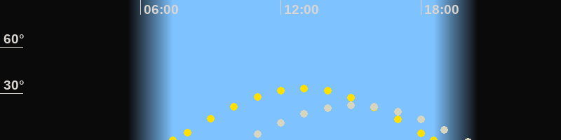 | Höchster Sonnenstand (Kulmination) | 12:57 Uhr (h = 33.4°) |